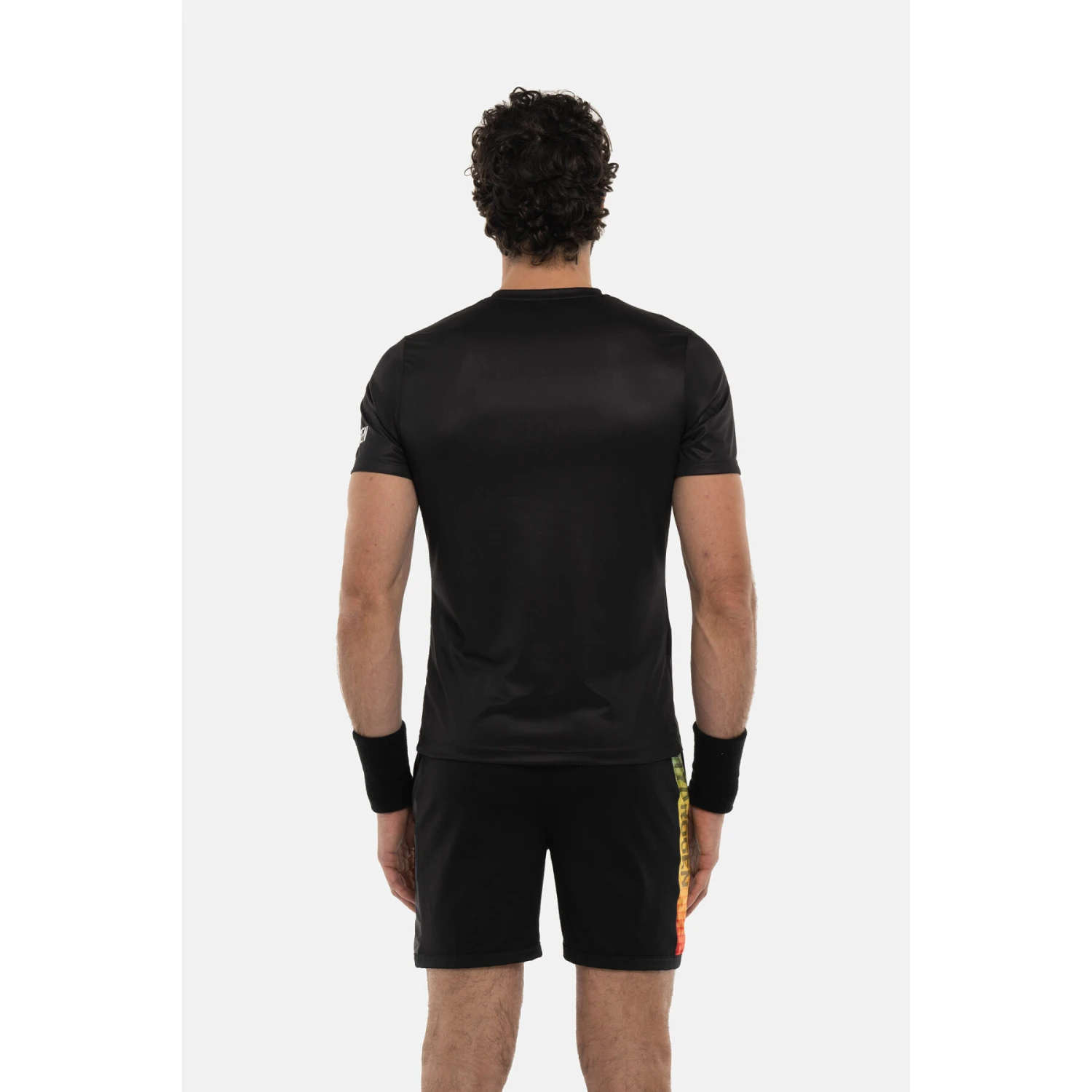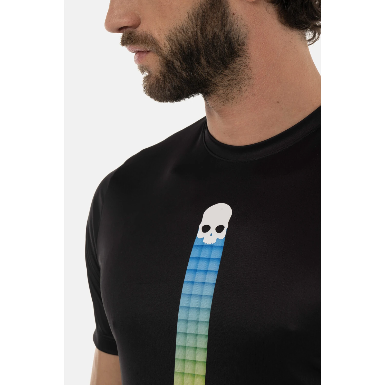 Hydrogen T-shirt noir en polyester avec graphismes prismatiques multicolores et logos blancs contrastés